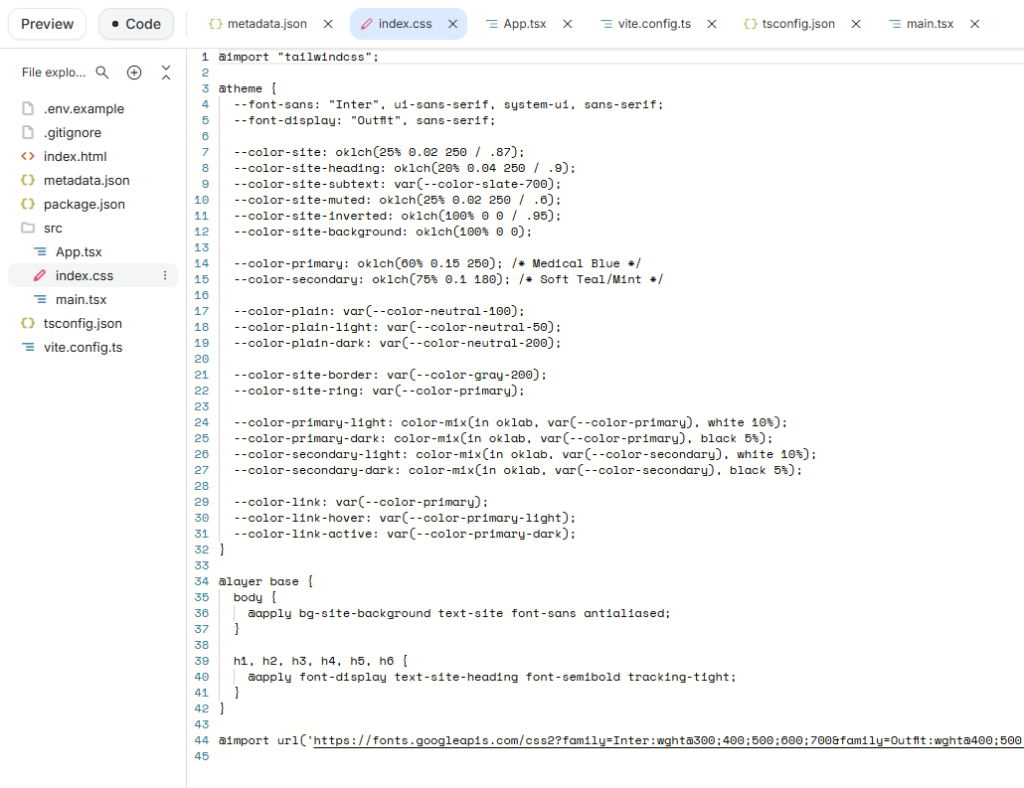 Looking at the code in Google AI studio, the theme variables are created as specified: