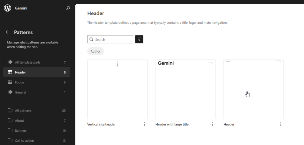 Since a “full site editing” theme uses Template Parts (aka Patterns) for Header and Footer we’ll have to do that under the Site Editor: