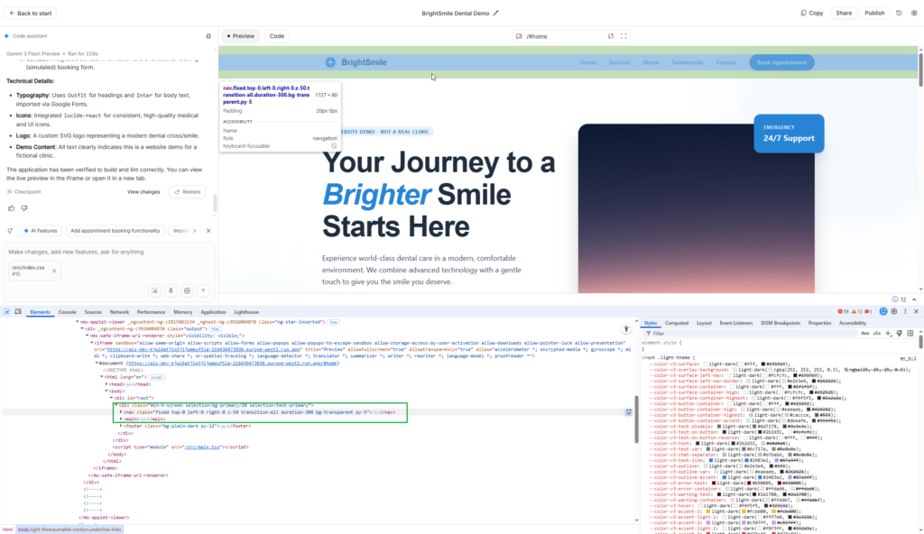 Skip to final resultFor this example I’m using Gemini with Google AI Studio, how ever any method that can produce a Tailwind-based site, such as Claude Code, Lovable, Cursor, or a pre-made Tailwind design will work.