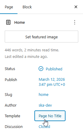 Finally the content sections need to be converted. For that, let’s create a new Page – “Home” and set its’ page template to “Page No Title”: