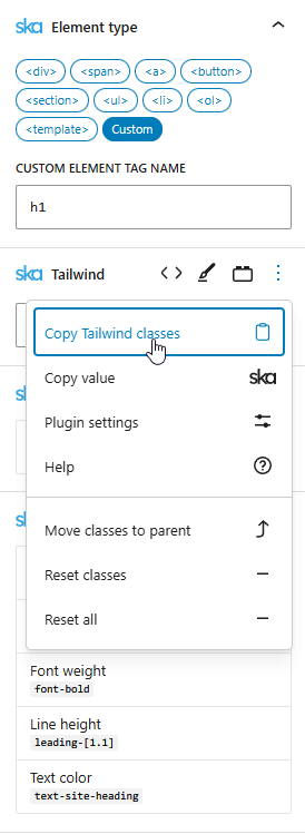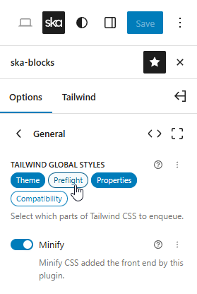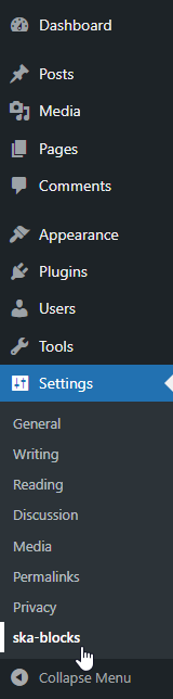 To configure Tailwind to use these variables navigate to ska-blocks settings in the WordPress admin dashboard:
