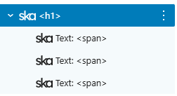 Due to the conversion from HTML the heading has lost some whitespace (which is hard to accurately keep due to the nature of HTML spec) and it’s a <h1> element with 3 <span>-s because part of it uses the primary color:
