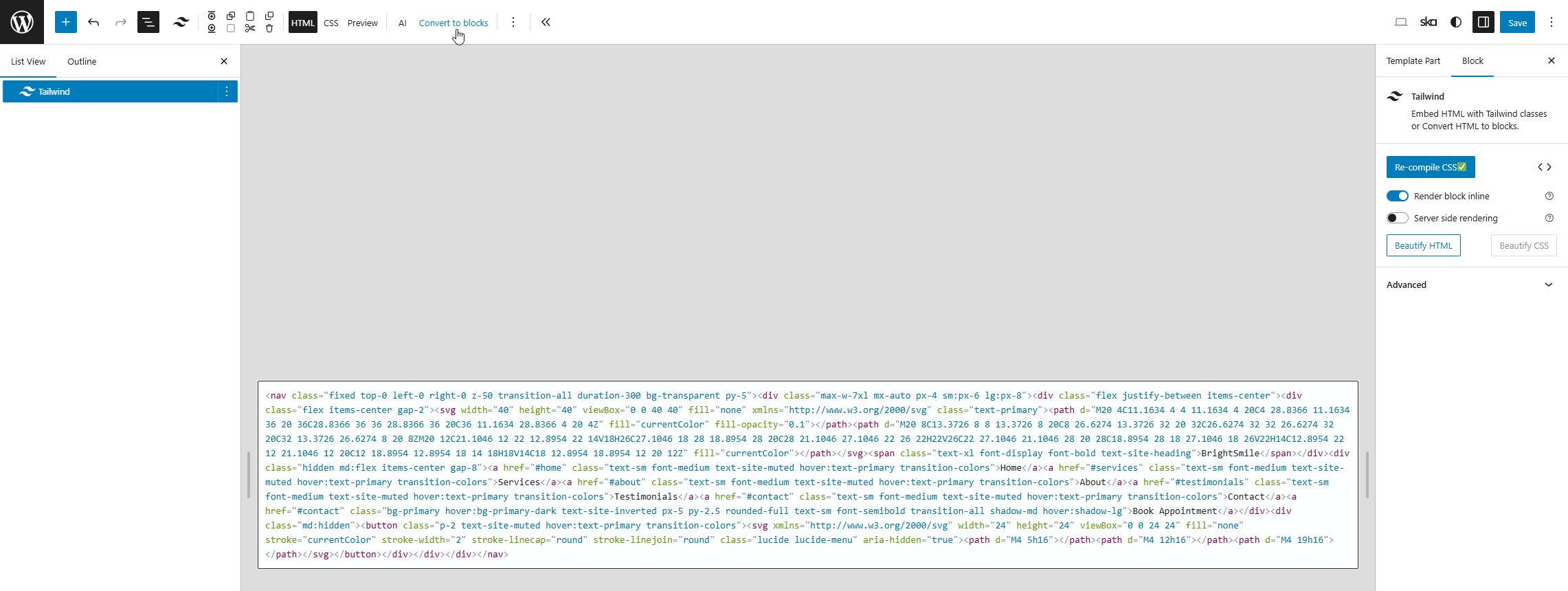 Paste it into the Tailwind block and hit “Convert to blocks”: