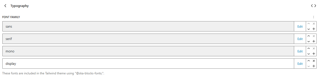 To configure Tailwind to use these variables navigate to ska-blocks settings in the WordPress admin dashboard: