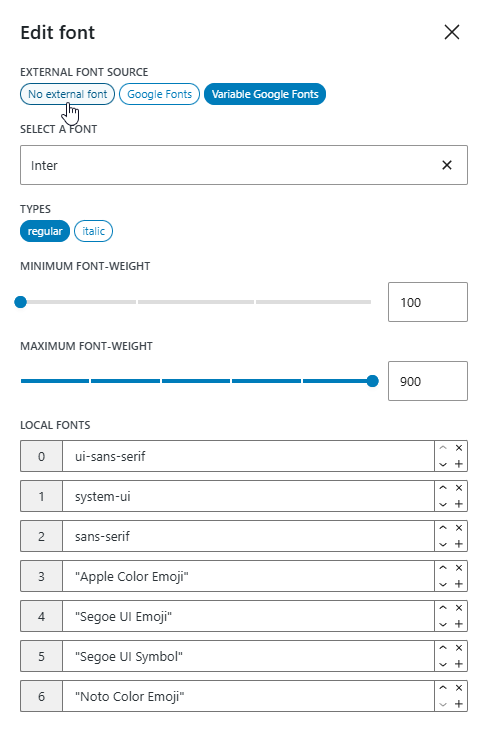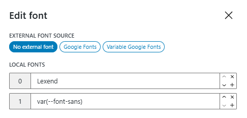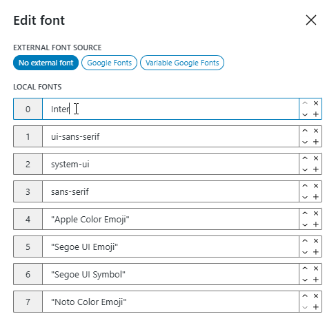 If you’re adding a brand new font just click the plus icon. - Change the font source to “No external font“.