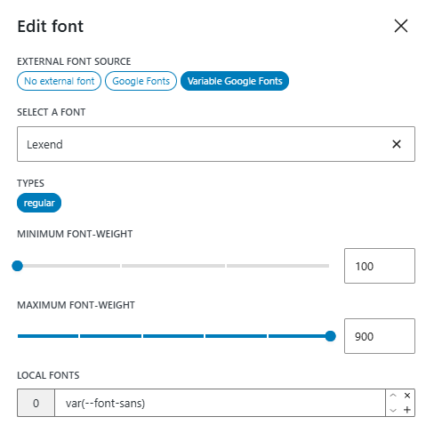 A custom font can include another font as a fallback by using var(--font-{slug}) as a fallback font: