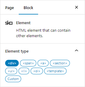 block is capable of displaying items in a “Row”, “Stack” or a “Grid” by using simple button controls, you may find that when it’s needed to more granularly customize the behavior (such as flex direction, justification, gap, column/row spanning, etc) on different screen sizes, it will become confusing to mix the “WordPress way” of doing things and additional Tailwind classes (for features that WP doesn’t support), that is why using the ska/element