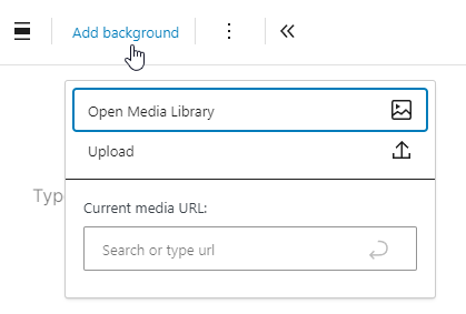 For simplicity, the block also supports adding a background image or video directly from the WordPress media library by selecting Add background from the block toolbar: