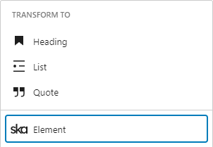 Transforming a block to Element block will also wrap the block that is being “transformed”: