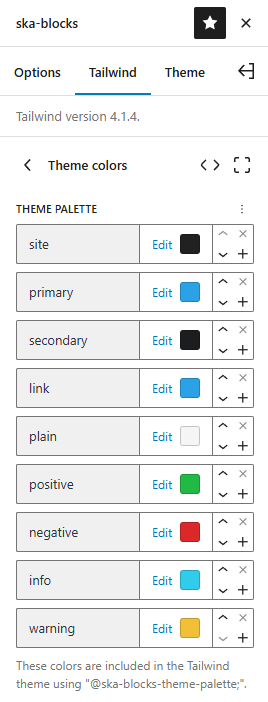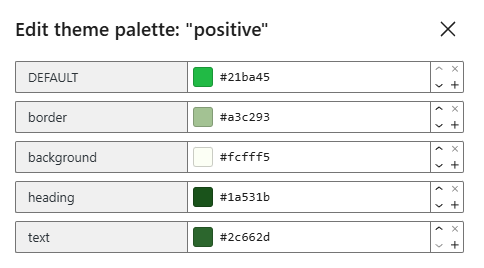 The custom Theme palette option in Tailwind configuration contains values for positive, negative, info and warning colors which can be used to create various messages with appropriate appearances.