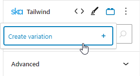 Since ska-blocks gives you powerful blocks like Element and Text as well as Presets which can create anything imaginable, you may want to package some of it up to conveniently re-use. Click the block icon and choose Create variation.