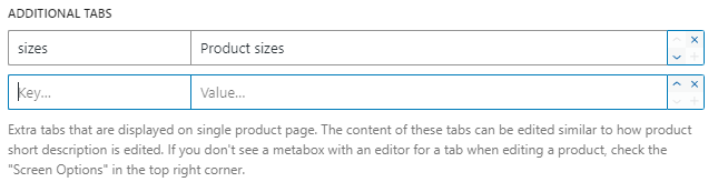 With this option you can add additional tabs to the single product page: