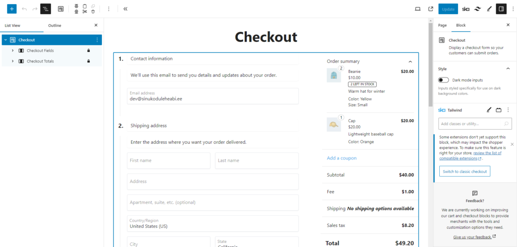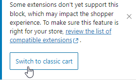 Same goes for the checkout page, if it’s using blocks, you’ll probably want to switch to the classic checkout from the right sidebar: