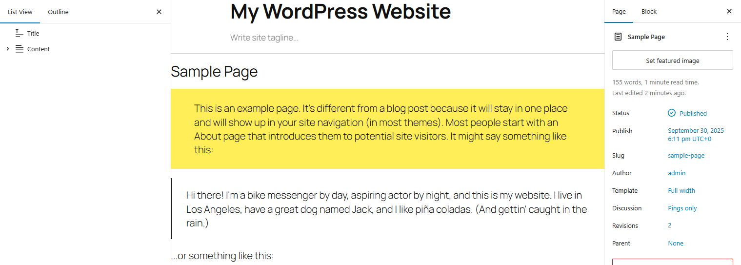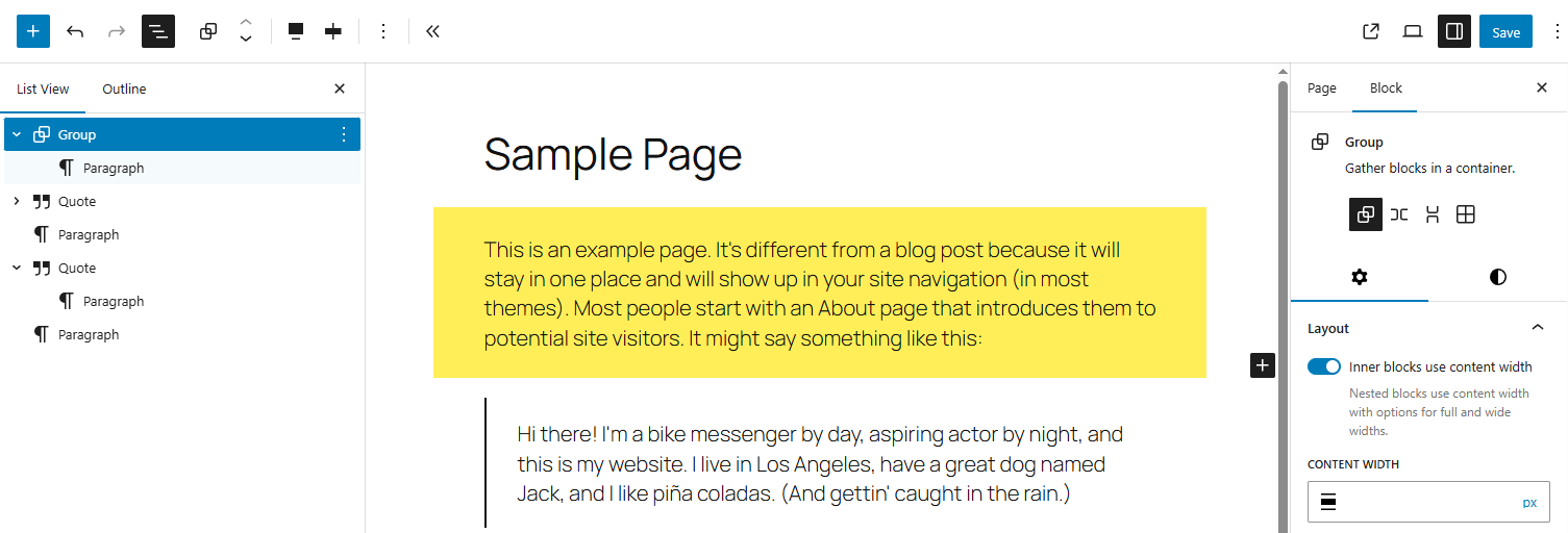 For this example, let’s edit a Page and make a Paragraph block full width: